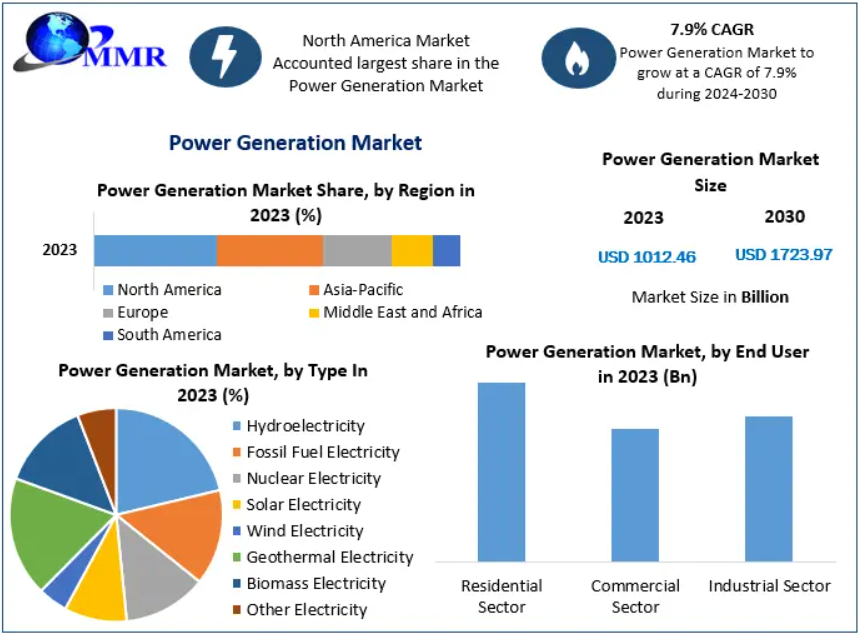 The Power Generation Market is a critical cornerstone of global infrastructure, driving economic development and societal welfare. With a market size valued at USD 1,012.46 billion in 2023, the industry is projected to grow at a CAGR of 7.9% from 2024 to 2030, reaching nearly USD 1,723.97 billion. Power generation ensures that households, industries, and businesses have access to reliable electricity, supporting urbanization, industrialization, and sustainable economic growth.