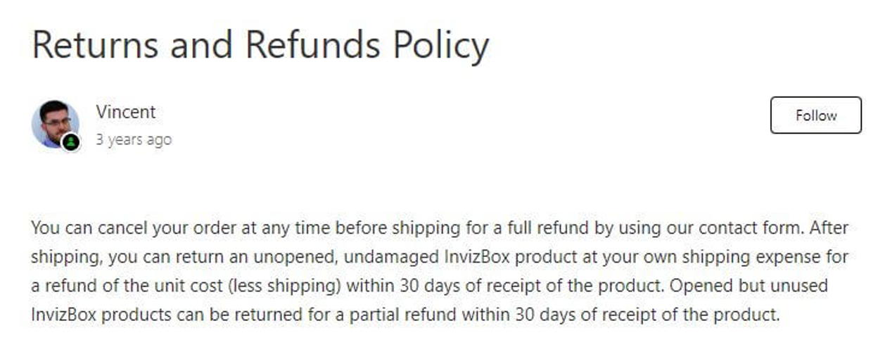 Customer satisfaction is protected by InvizBox's 30-day money-back guarantee policy. It's worth noting that opened products qualify for partial refunds rather than full reimbursement.