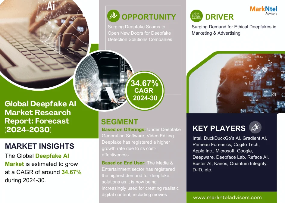 MarkNtel Advisors, a leading market research and consulting firm, has announced the release of its latest study titled “Global Deepfake AI Market Analysis, 2024-2030.”