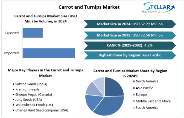 Carrots and Turnips was 52.22 Million,in 2024, and it is projected to register a CAGR of 4.2% during the forecast period (2025-2032).