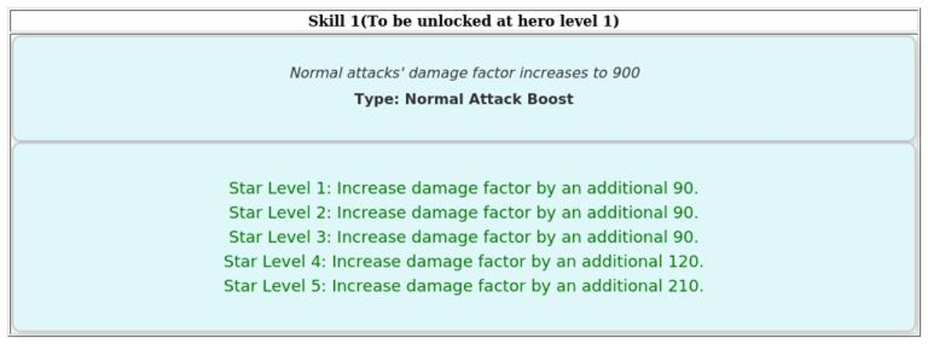 Please note that the data provided may be updated periodically; for the most current and precise details about your in-game hero, kindly refer to the in-game information directly.