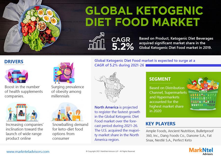 The Ketogenic Diet Food Market is likely to grow at a CAGR of around 5.2% between 2021-26.