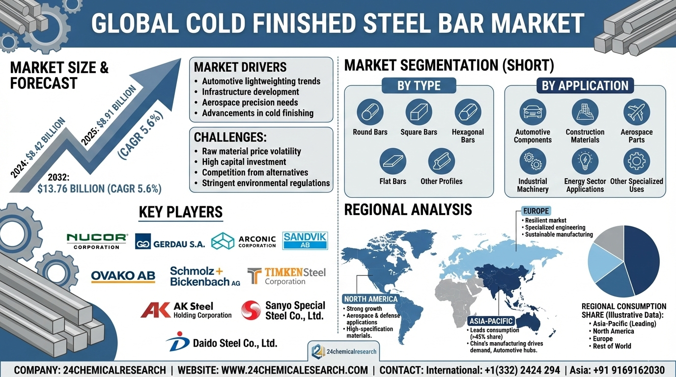 Global cold finished steel bar market size was valued at USD 8.42 billion in 2024. The market is projected to grow from USD 8.91 billion in 2025 to USD 13.76 billion by 2032, exhibiting a CAGR of 5.6% during the forecast period. This market's trajectory reflects broader trends toward high-precision metal components in advanced manufacturing.