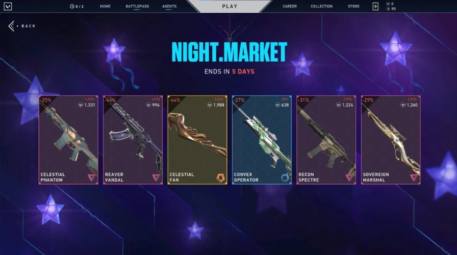 Tous les quelques mois, Riot Games étonne la communauté de Valorant avec un événement spécial appelé le Marché Nocturne. Il s’agit d’une boutique temporaire en jeu où les joueurs peuvent acheter des objets à prix réduits.