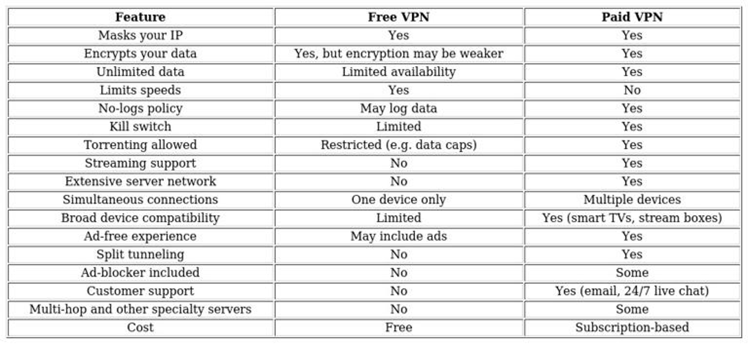 When deciding between free and paid VPNs,