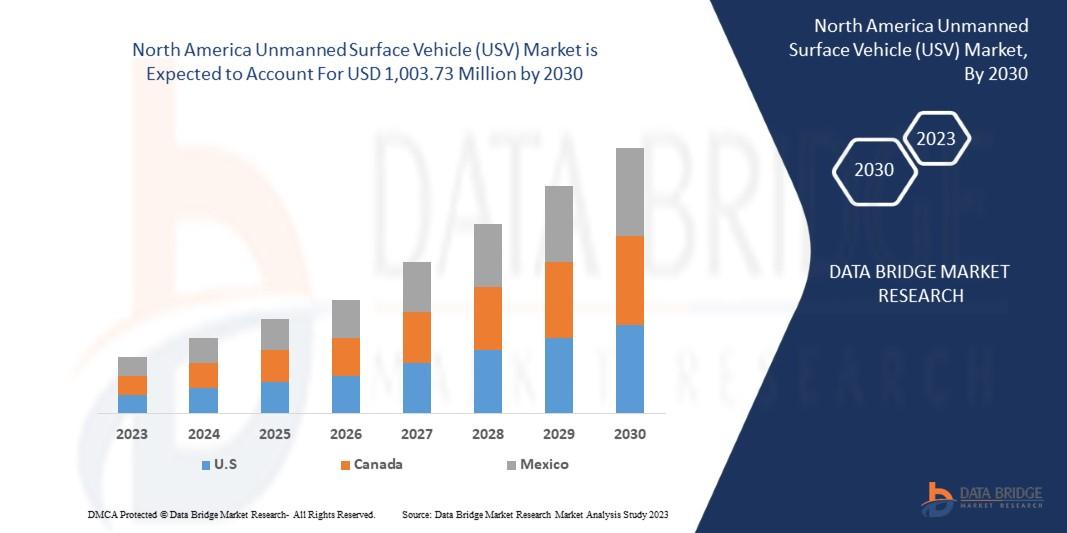 Data Bridge Market Research analyses that North America unmanned surface vehicle (USV) market is expected to reach the value of USD 1,003.73 million by 2030, at a CAGR of 13.8% during the forecast period.