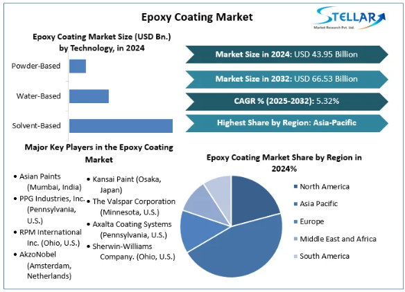 Stellar Market Research, a leading business consultancy firm, has published an in-depth analysis of the Epoxy Coating Market, offering valuable insights and projections. This detailed study covers critical business intelligence, demand analysis, pricing strategies, competitive landscape, and key growth drivers, providing a comprehensive view of the Epoxy Coating market's current state and its future potential.