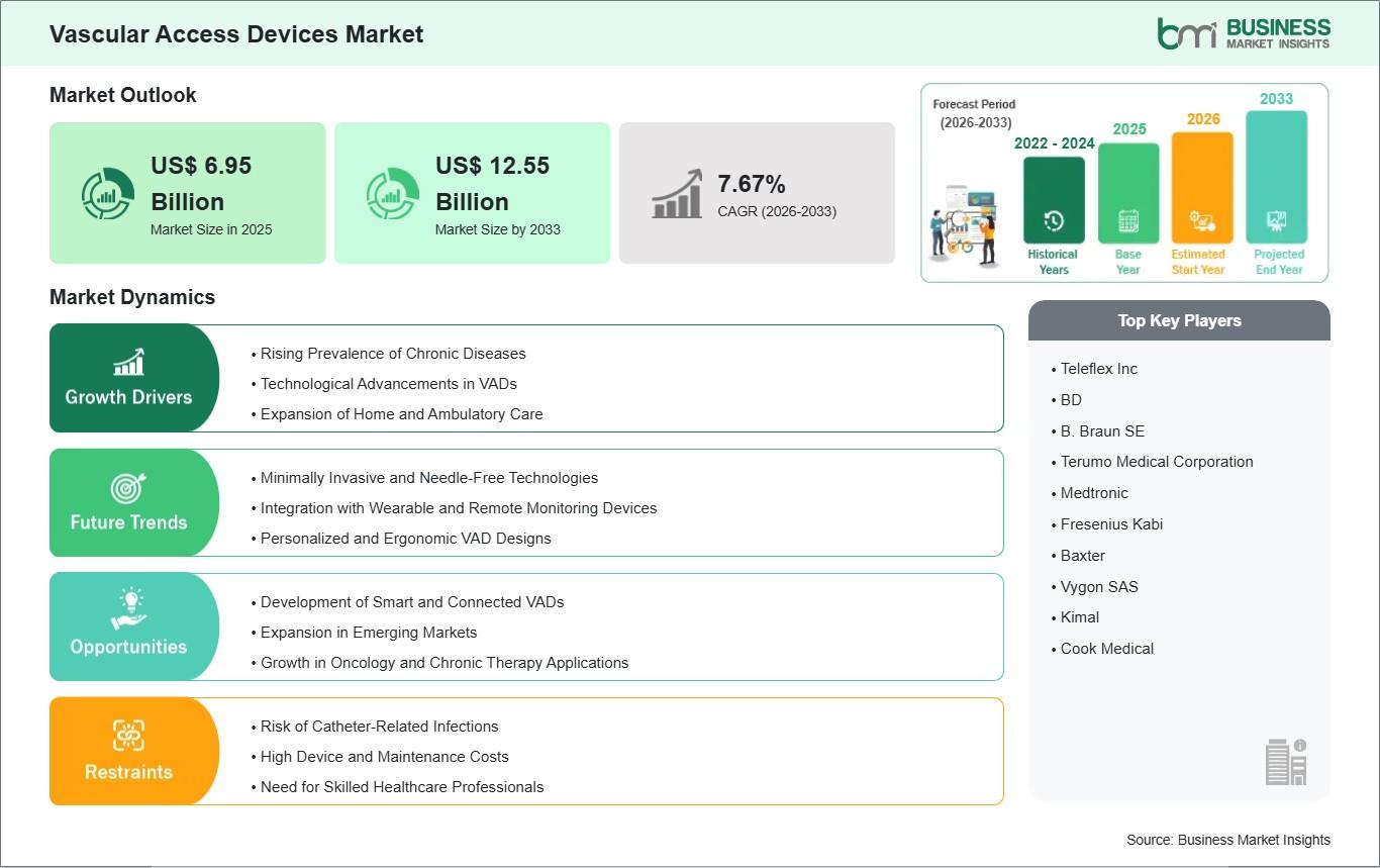 According to The Business Market Insights In a rapidly expanding healthcare landscape, the Global Vascular Access Devices Market size is expected to reach US$ 12.55 billion by 2033 from US$ 6.95 billion in 2025, recording a robust CAGR of 7.67% from 2026 to 2033. This surge underscores the critical role of these devices in delivering therapies for chronic conditions like cancer, kidney disease, and cardiovascular disorders. As global healthcare demands intensify, innovations in vascular access technology promise enhanced patient outcomes and market growth.