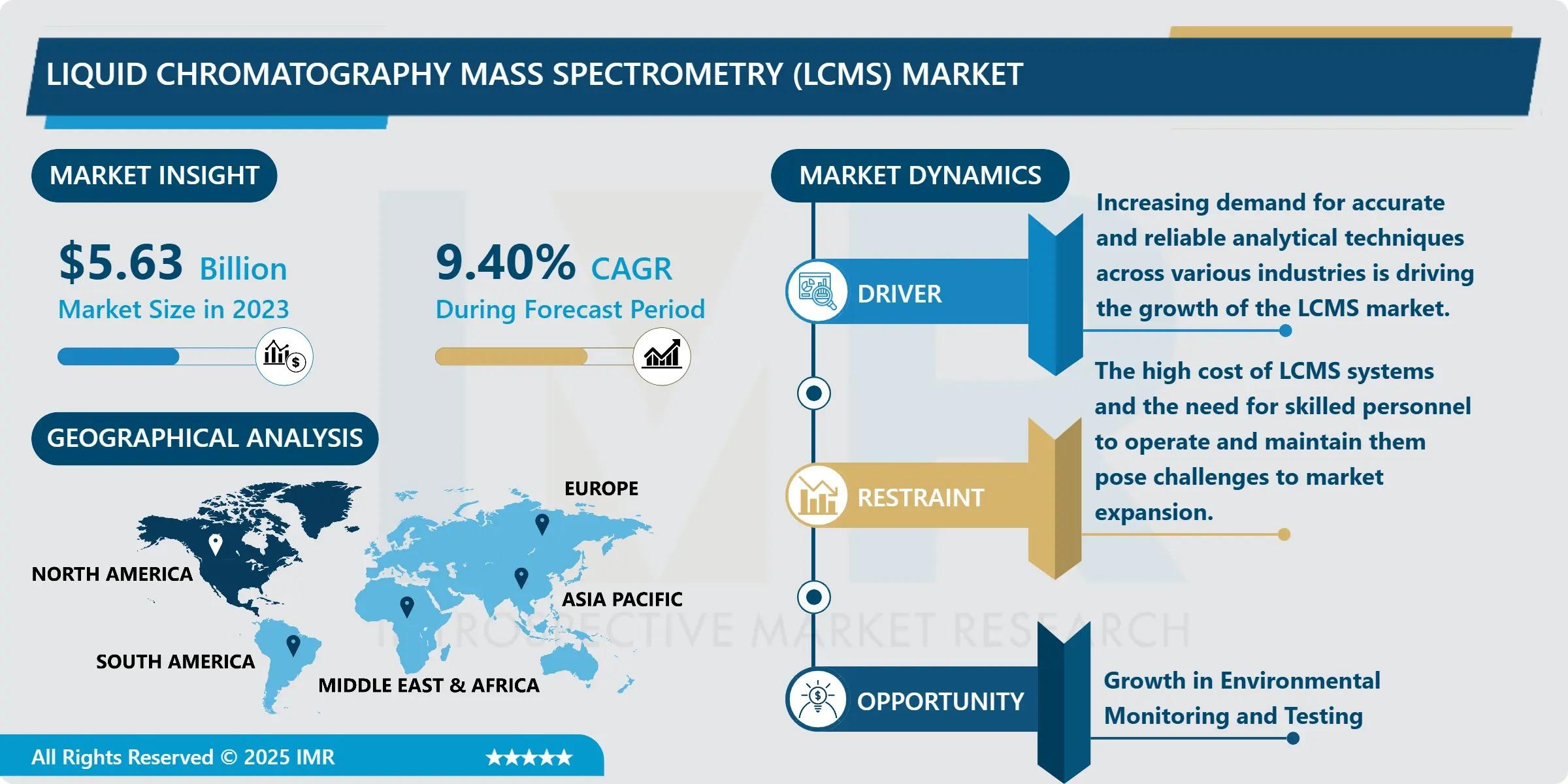 The global LCMS market is witnessing strong growth due to rising pharmaceutical R&D investments, increasing demand for advanced diagnostic techniques, and expanding applications in life sciences and environmental testing. Continuous technological advancements and automation are further driving market expansion worldwide.