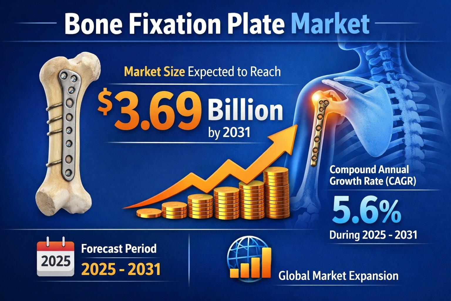 The Bone Fixation Plate Market is projected to reach US$ 3.69 Billion by 2031, registering a CAGR of 5.6% during 2025 to 2031. Bone fixation plates are essential orthopedic devices used to stabilize fractured bones and support proper healing following trauma or reconstructive surgery. Increasing cases of fractures due to road accidents, sports injuries, and age related bone disorders are significantly contributing to demand across hospitals and specialty orthopedic centers. The report delivers comprehensive analysis at global, regional, and country levels, with revenue estimates presented in USD for all key segments.