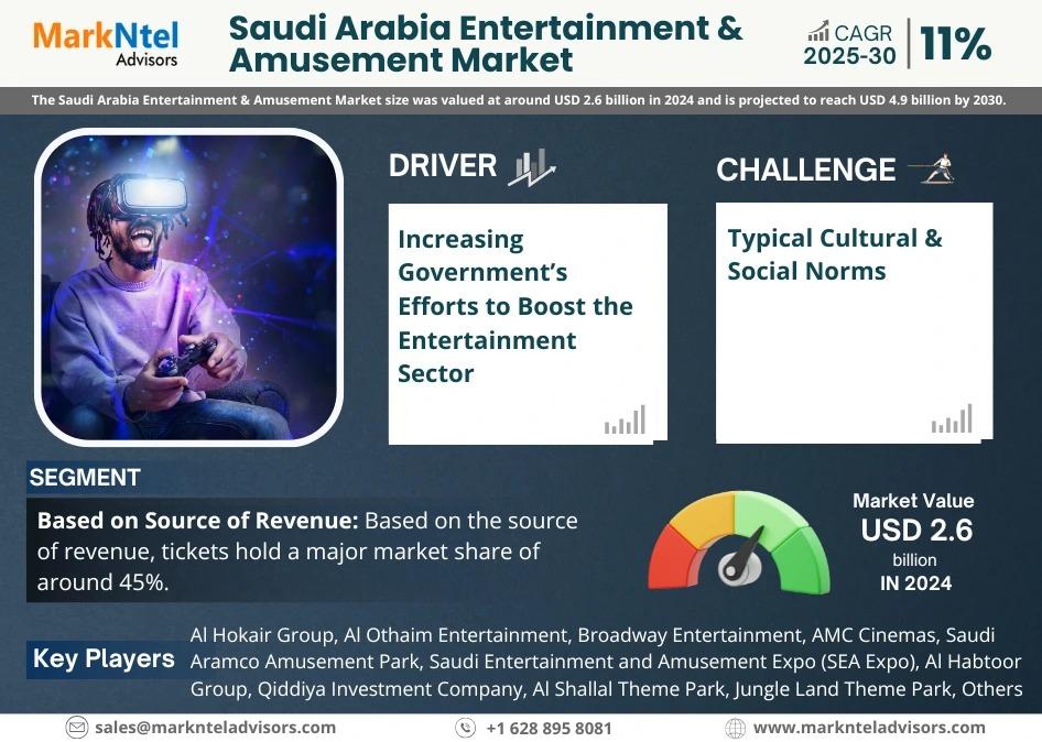 MarkNtel Advisors recently published a detailed industry analysis of the Saudi Arabia Entertainment & Amusement Market. The report covers growth trends, geographical marketing strategies, challenges, opportunities, and drivers influencing the market.