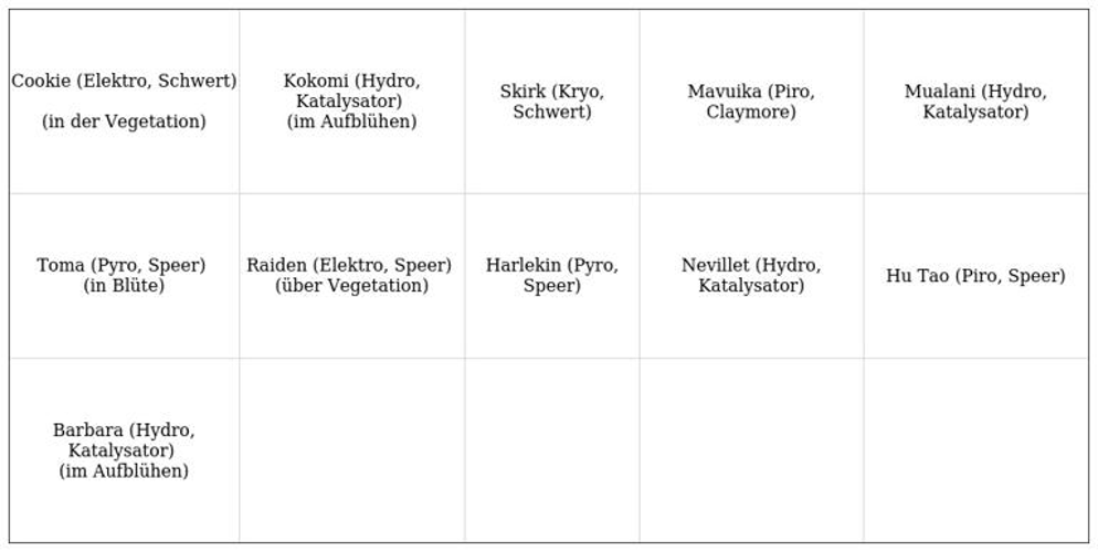 Die wertvolle Ressource sollte vorrangig jenen Figuren zugutekommen, deren Fähigkeiten auf Elementarreaktionen basieren.