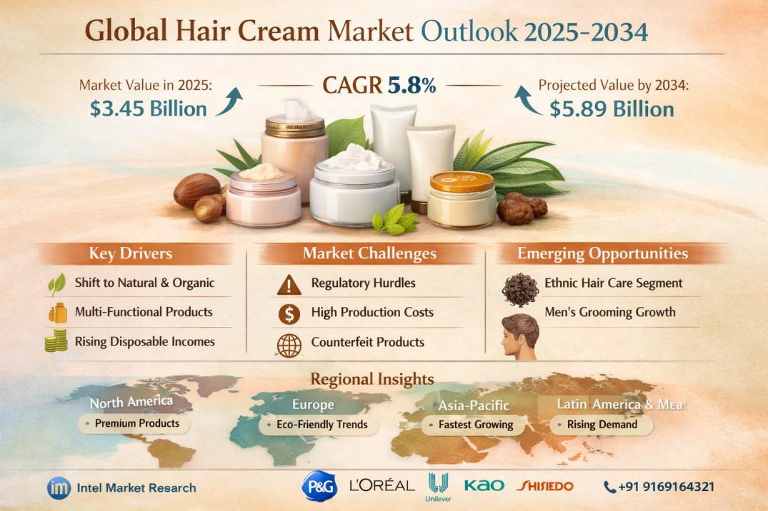 Global Hair Cream Market Growth Report 2026–2034: Natural Formulations and Premium Grooming Trends Drive 5.8% CAGR