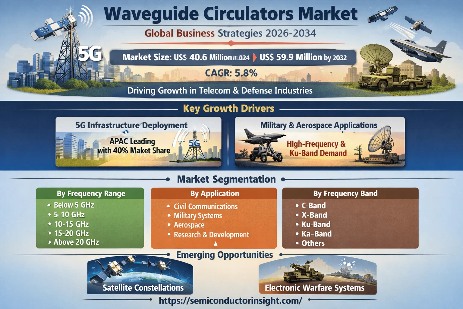 Waveguide Circulators Market, valued at USD 40.6 million in 2024, is poised for steady growth, projected to reach USD 59.9 million by 2032. This expansion, representing a compound annual growth rate (CAGR) of 5.8%, is detailed in a comprehensive new report published by Semiconductor Insight. The study emphasizes the critical role these specialized passive microwave components play in enabling signal isolation and directionality within high-frequency communication, radar, and electronic warfare systems.