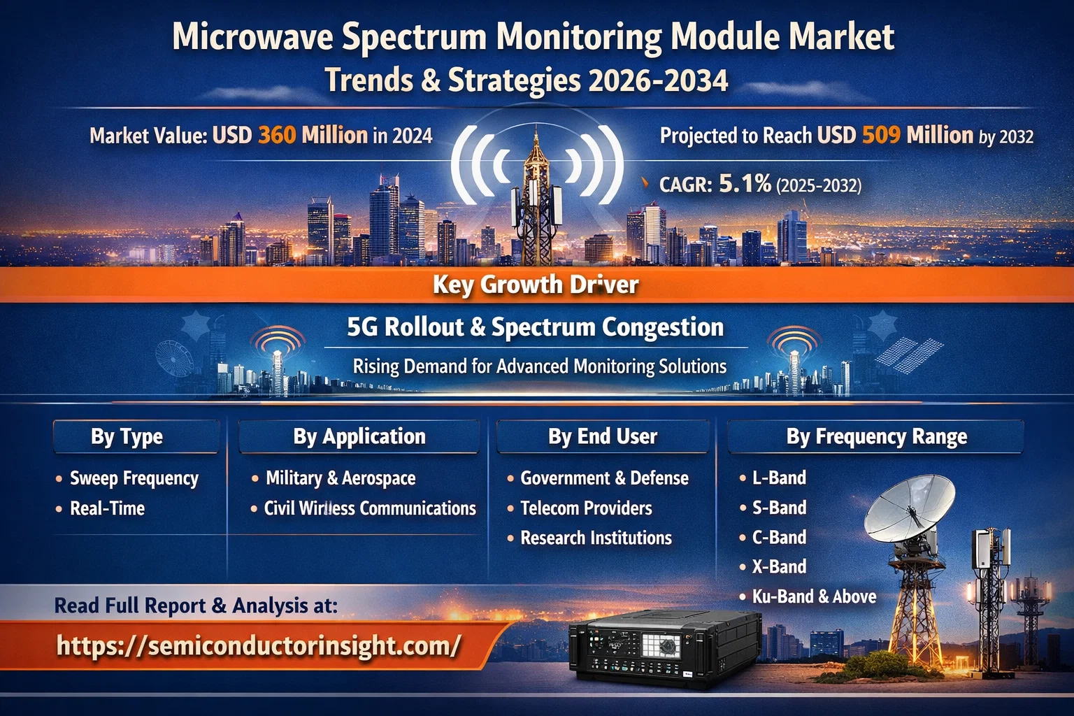 The market research report offers a comprehensive analysis of the global and regional Microwave Spectrum Monitoring Module markets from 2025–2032. It provides detailed segmentation, market size forecasts, competitive intelligence, technology trends, and an evaluation of key market dynamics.