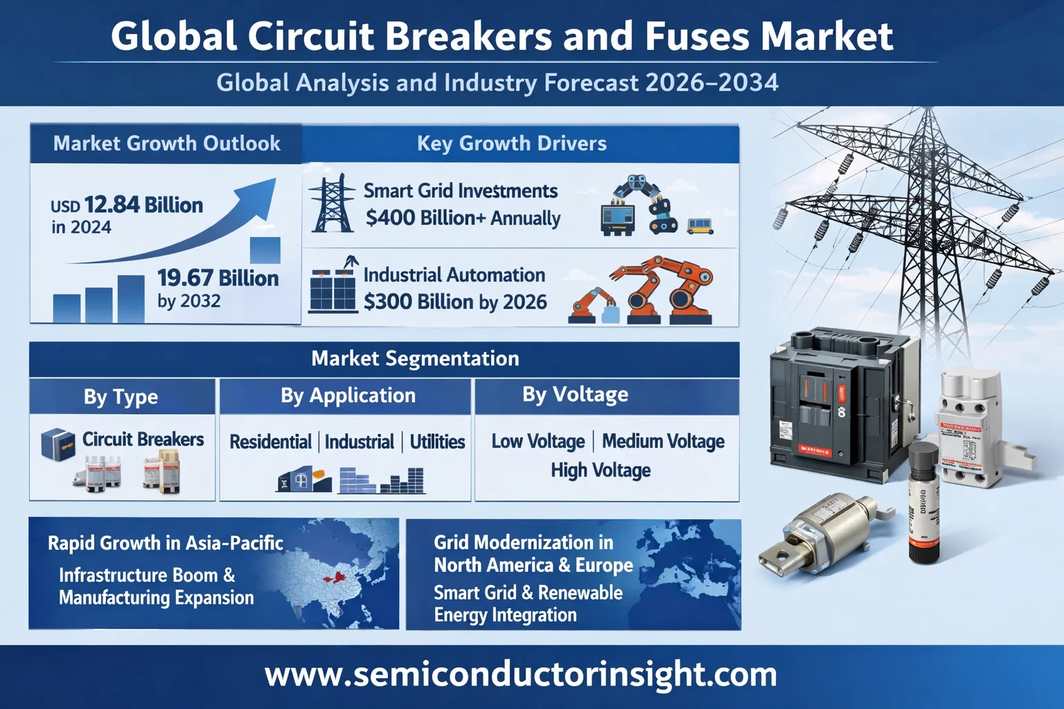 Global Circuit Breakers and Fuses Market, valued at a substantial USD 12.84 billion in 2024, is set for steady growth, projected to reach USD 19.67 billion by 2032. This expansion, representing a compound annual growth rate (CAGR) of 5.3%, is detailed in a comprehensive new report published by Semiconductor Insight. The study underscores the indispensable role of these critical electrical protection devices in safeguarding modern infrastructure, industrial operations, and residential safety across global power distribution networks.