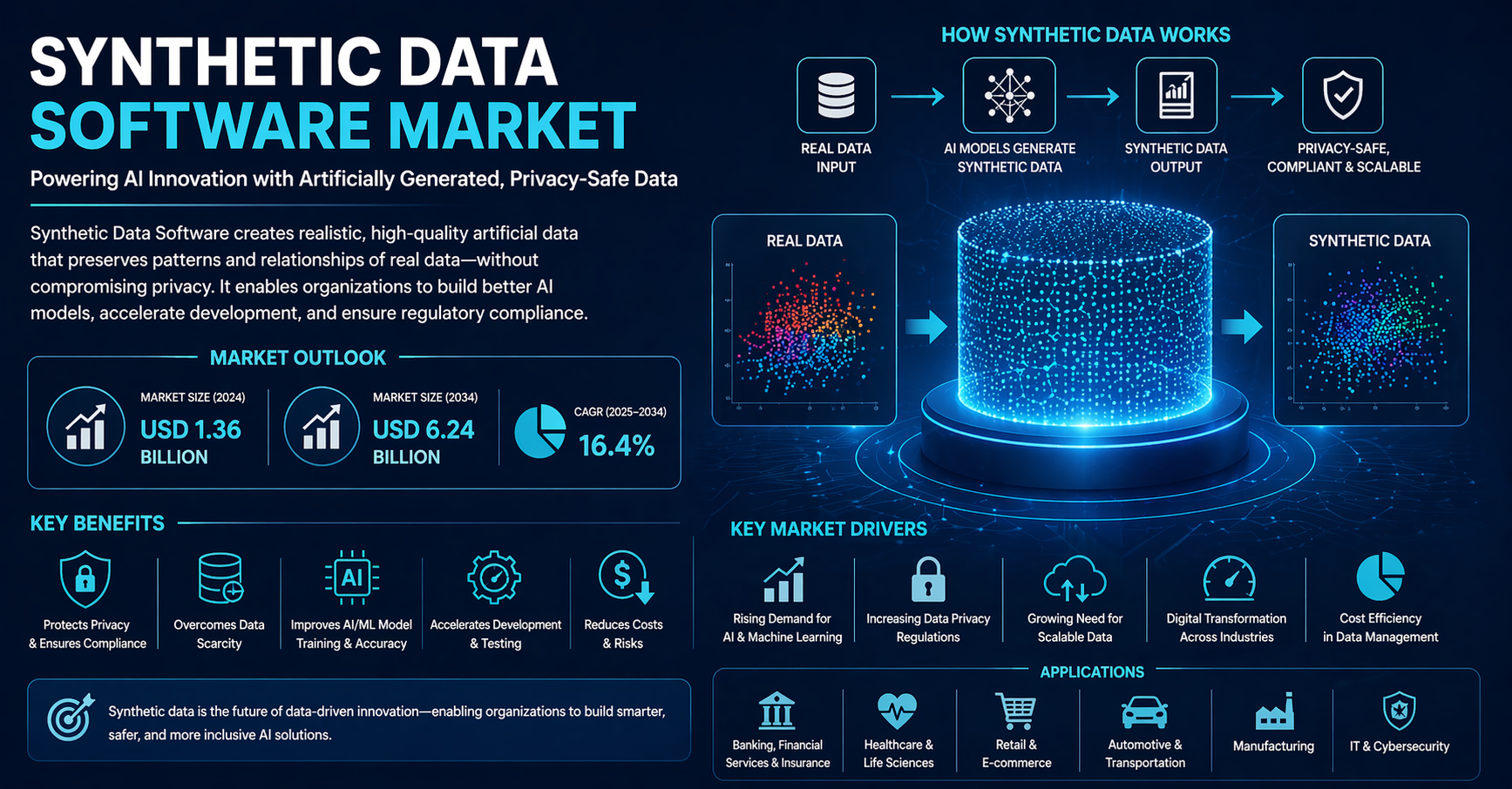 The market analysis highlights that data privacy concerns and cybersecurity risks are among the most significant factors influencing adoption. With regulations such as GDPR and CCPA restricting access to real user data, organizations are increasingly turning to synthetic alternatives. These solutions allow businesses to generate compliant datasets while maintaining data integrity and usability.