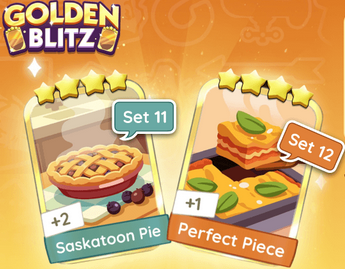 The designated gold stickers for Monopoly Go Golden Blitz event will go on sale on IGGM on September 20th, called "Set12 - Perfect Piece and Set11 - Saskatoon Pie"