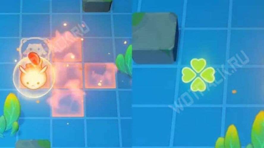 Nachdem du mit ihr gesprochen hast, nimmst du an einem Brettspiel teil, bei dem du gemeinsam mit anderen Reisenden gegen die Angriffe der Fischkrieger verteidigst. Dabei kommen Bomben zum Einsatz, um die Feinde zu bekämpfen und das Spiel zu gewinnen.