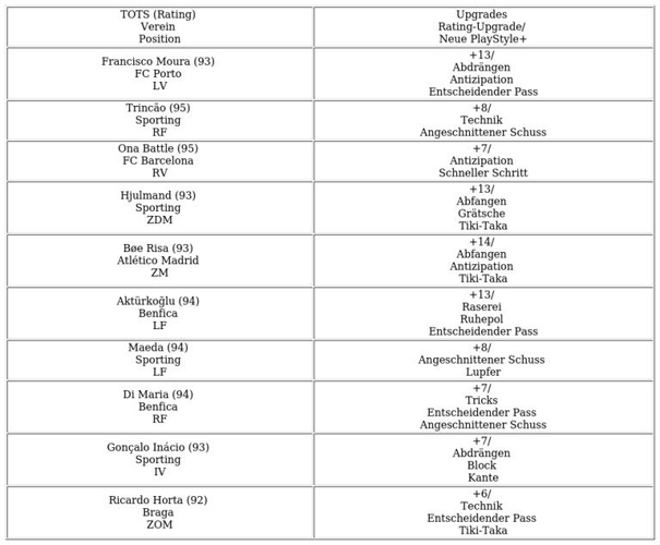 Auf Basis dieser Daten bewerten wir, ob das Upgrade der neuen TOTS-Karte: