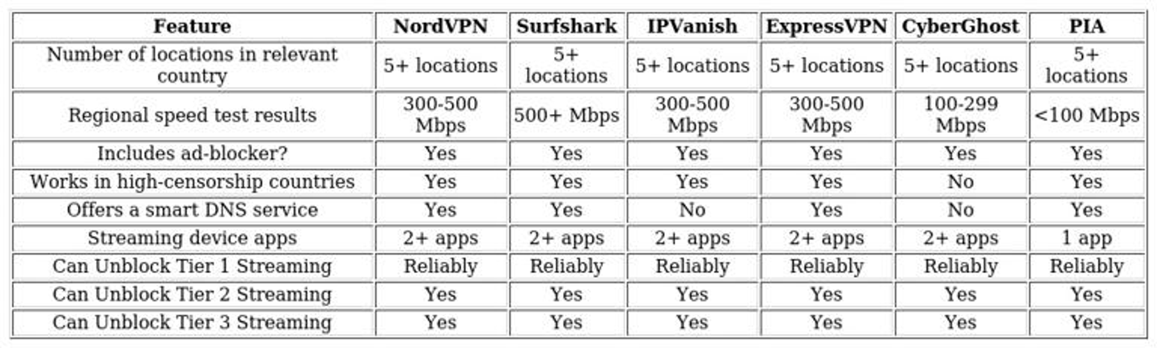 - CyberGhost — beginner-friendly apps and some of the fastest streaming/download speeds we’ve seen.