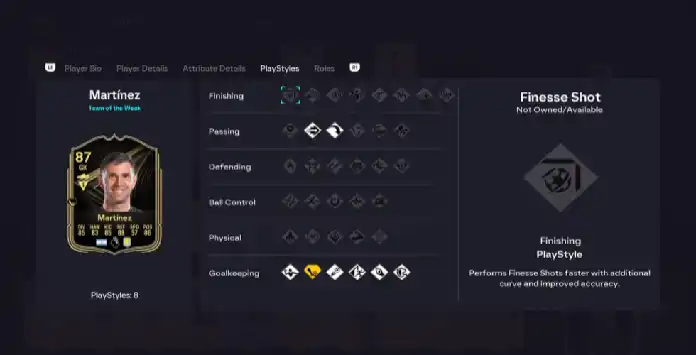 To view a player’s PlayStyles in Ultimate Team, select the desired player item from your squad or the transfer market, then press R3 to access their Bio. Navigate to the PlayStyles tab by pressing R1 or R3 multiple times, where you’ll find all assigned traits listed on the right.